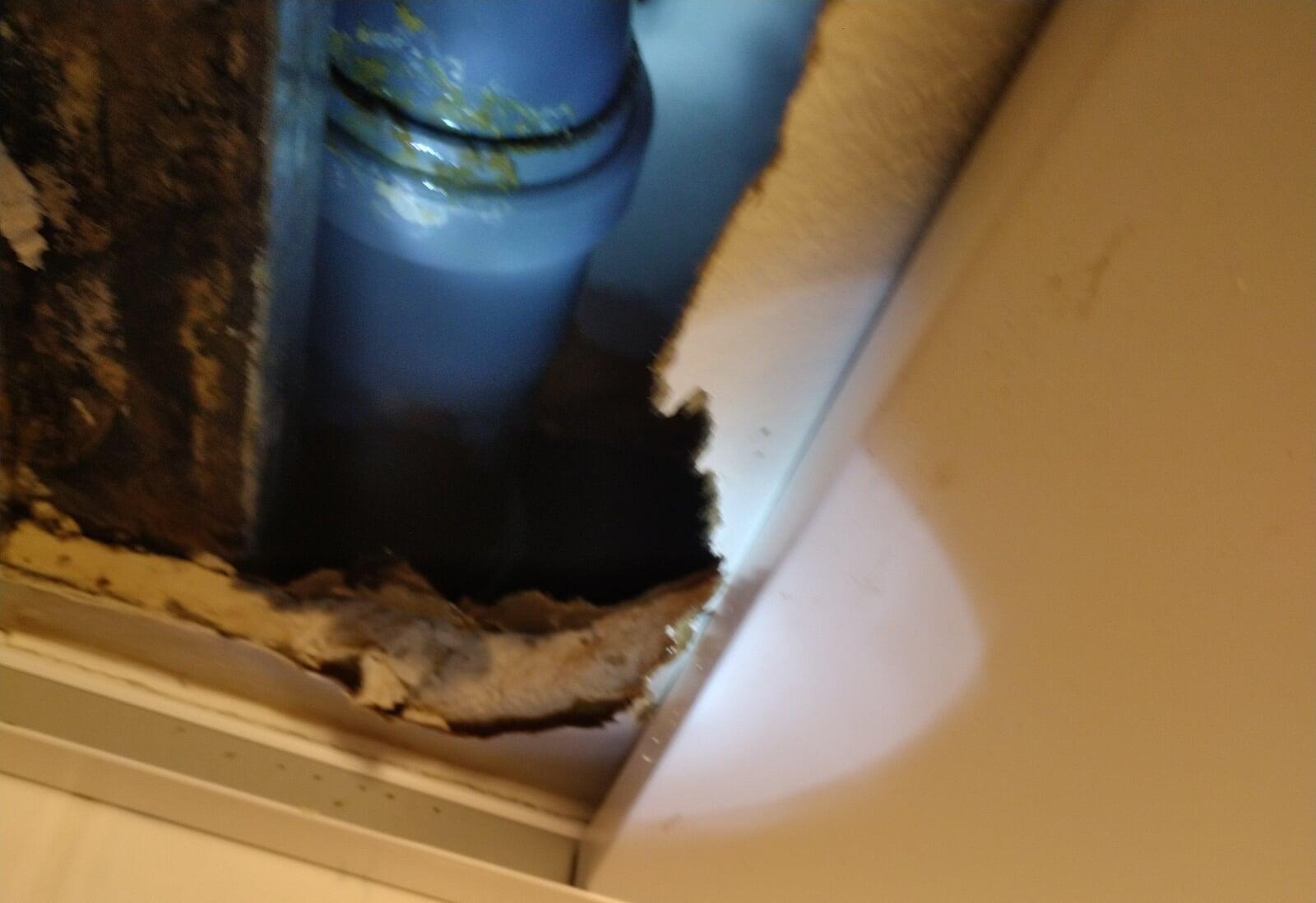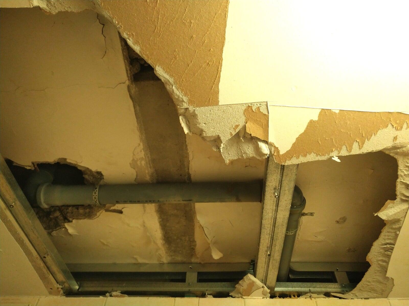 Korteris 88 oli duširuumi alas veekahjustus seoses ülemise korteri duširuumi kanalisatsioonitoru tihenditest. Pärast santehnilisi töid torude tihendite vahetusel on paigaldatud korteri 88 duširuumi alasse laena ripplagi