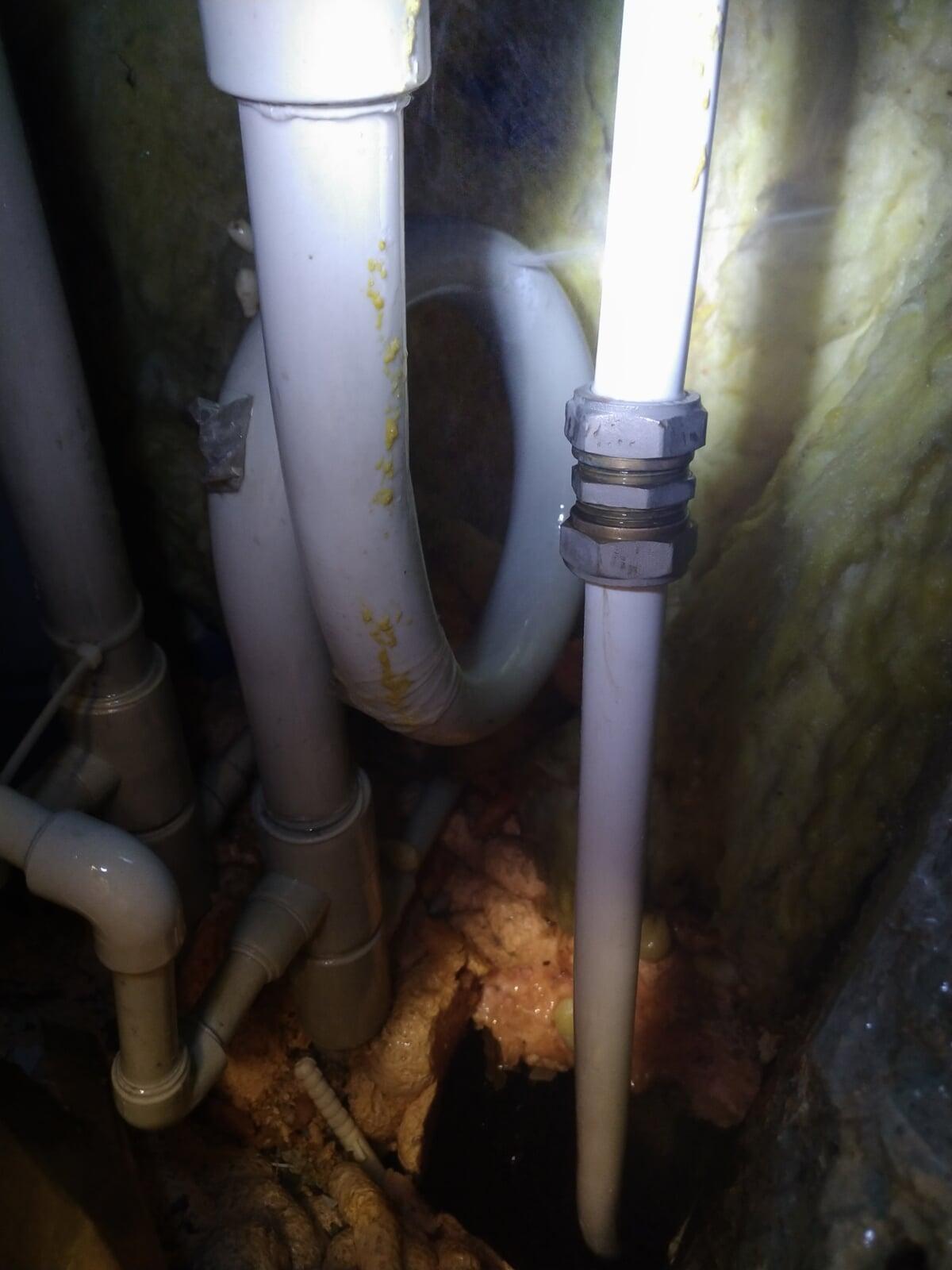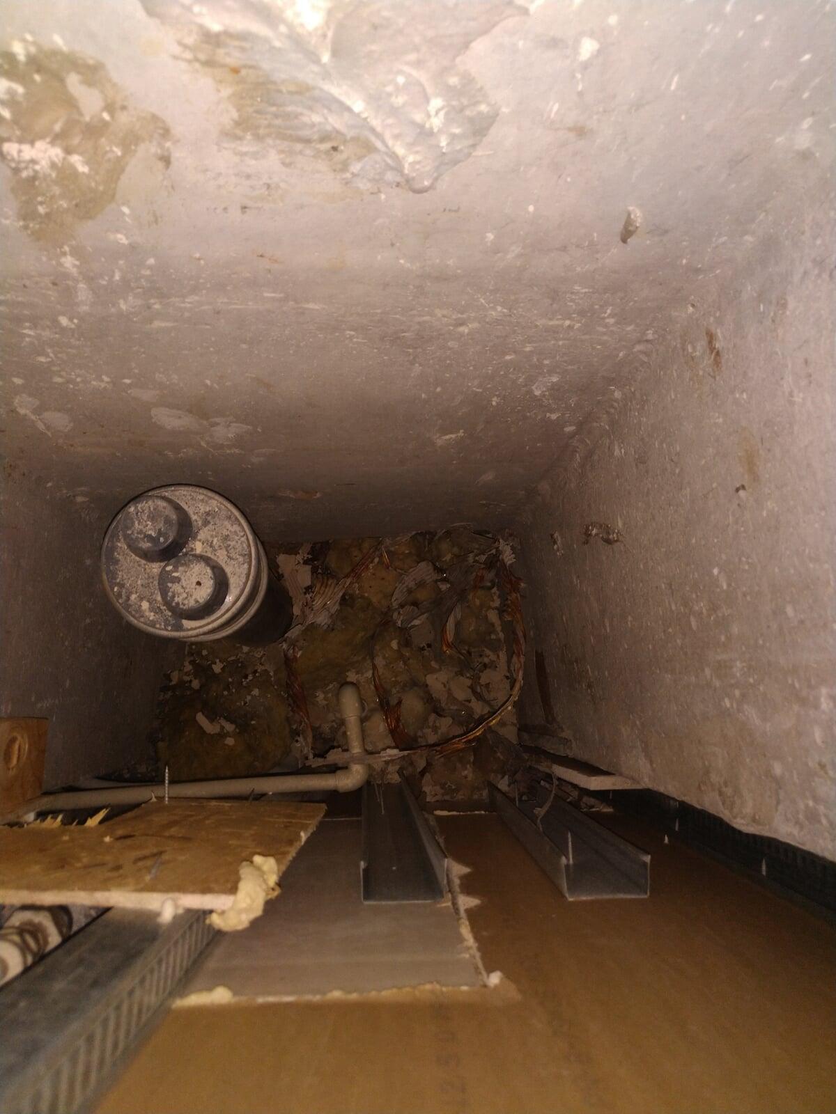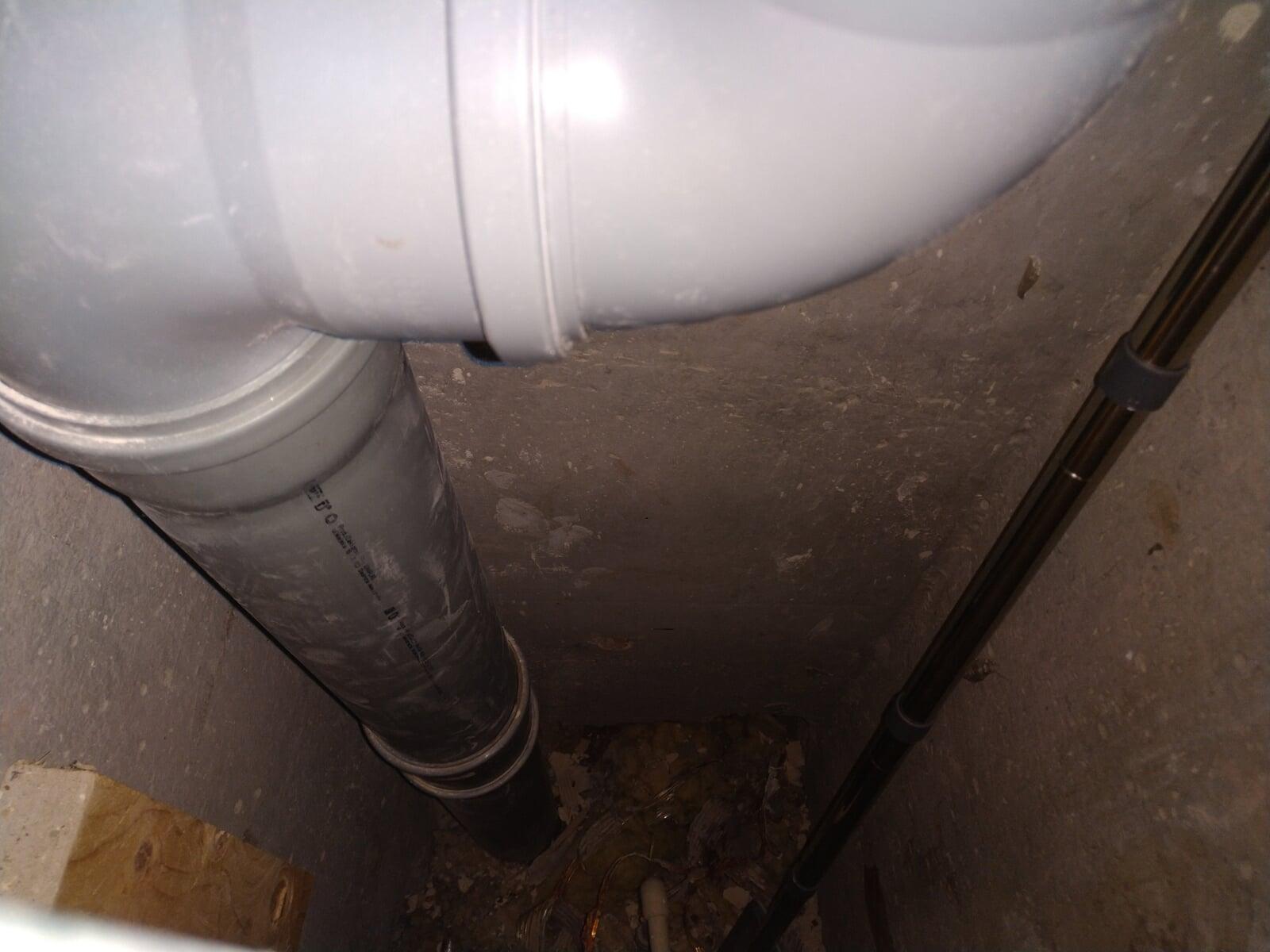 Suletud keldriosas on avastatud torustik, mis suunab reovee majast välja kanalisatsiooni. Torustiku ühendus oli kaheliiteline ja kasutamata liite osa ei olnud meie maja renoveerimisest saati suletud. Kasutamata liiteosa oli suletud kilekotiga ja selle ümber oli kilekoti hoidmiseks keeratud juhe. Aastate möödumisel on kilekott purunenud ja peakanalisatsiooni torustikust lekkis tohutu hais keldriosadesse. Seetõttu oli tunda trepikoja keldriosas sõltuvalt tuule suunast vahel suuremat ja vahel väiksemat kanalisatsiooni haisu.