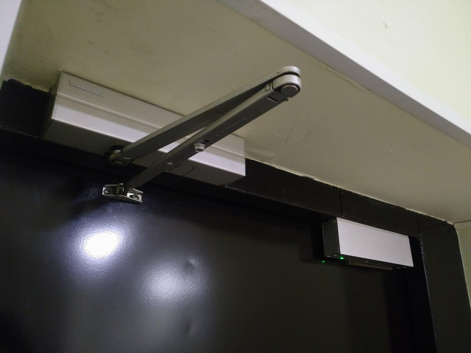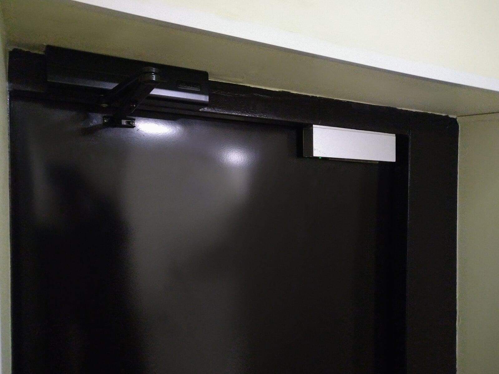 Välisukse uksesulguril oli purunenud tihend, mille tõttu voolas välja õli ning uksesulgur ei olnud enam töökorras, et uks sulguks vaikselt. Paigaldatud on uus uksesulgur ning kinnitusena on korrigeeritud ka välisukse magnetluku plaati.
