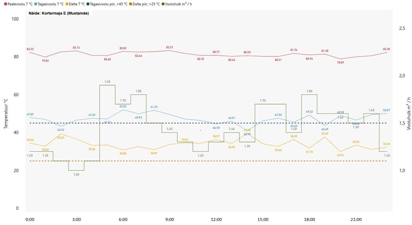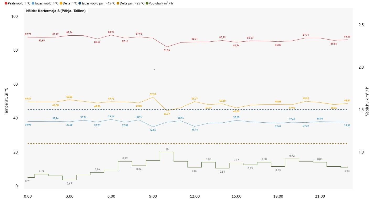 Akadeemia tee 42 kortermajas on tagasivoolu temperatuur 36,86 °C, mis on madalaim võrreldes kahe teise kortermajaga, kus vastavad näitajad on 37,65 °C ja 47,44 °C. Viimati nimetatud kortermajas ületab tagasivoolu temperatuur kehtestatud piirväärtust, mis viitab soojuse ebaefektiivsele kasutamisele.