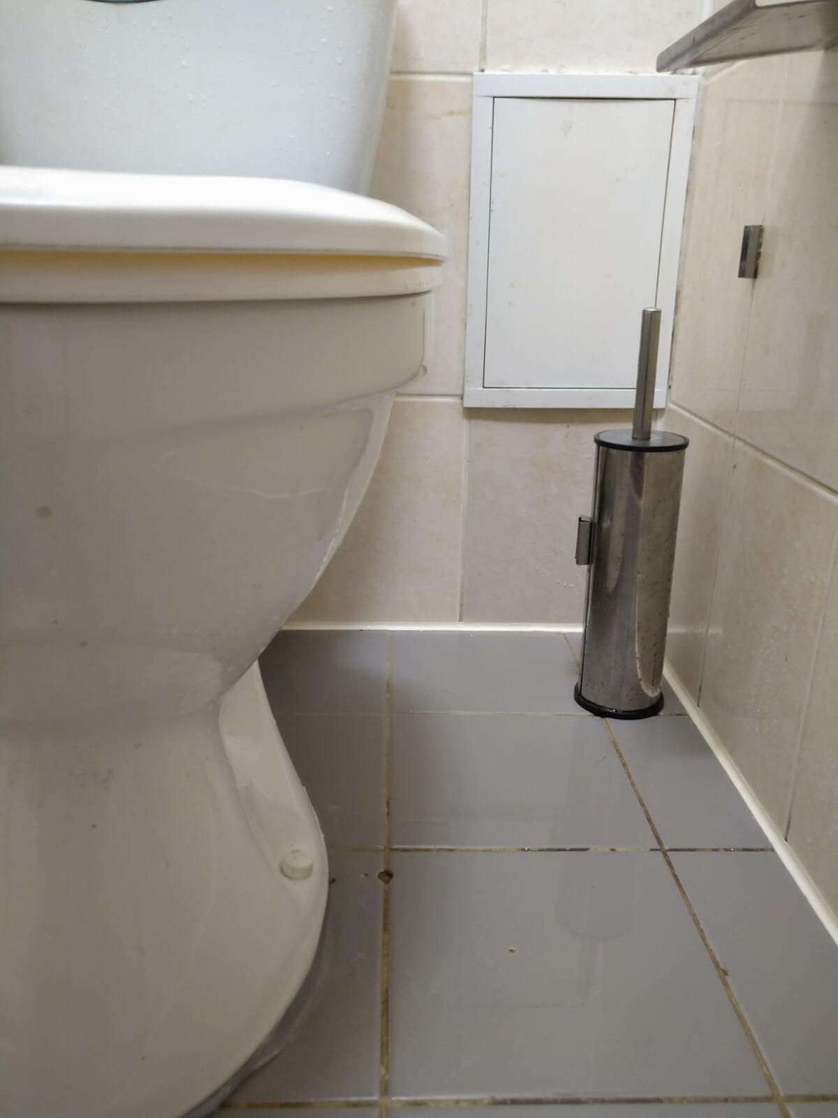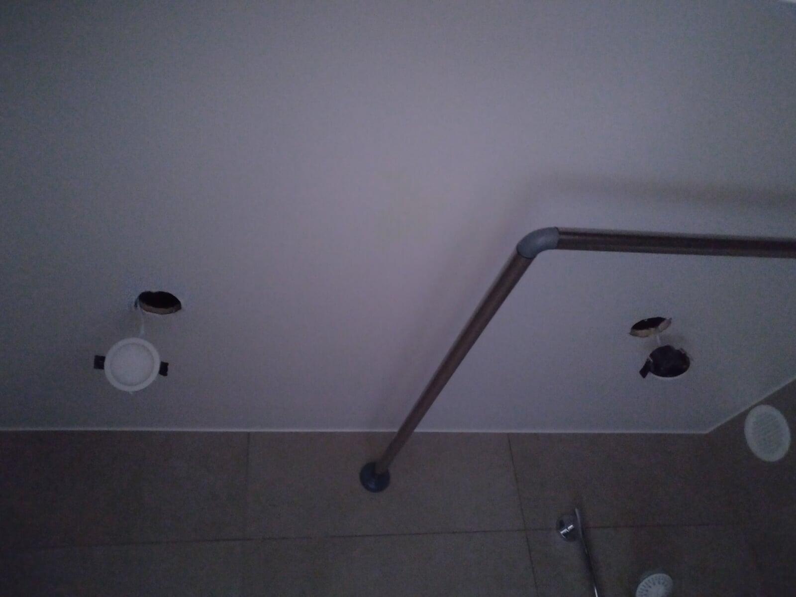 Korteris 100 oli duširuumi alas veekahjustus seoses ülemise korteri duširuumi kanalisatsioonitoru tihenditest. Pärast santehnilisi töid torude tihendite vahetusel on paigaldatud korteri 100 duširuumi alasse laena ripplagi