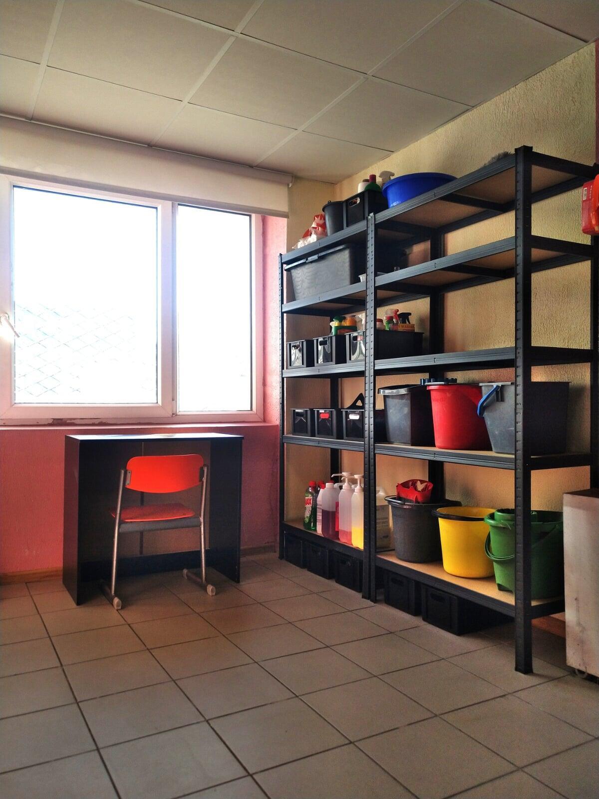 Soojussõlmes olid koristamise vahendid ja tarvikud laiali ruumipuudusest kuna ladustamise pinna hõivasid vanad kapid mitte vajalikuga sisuga.