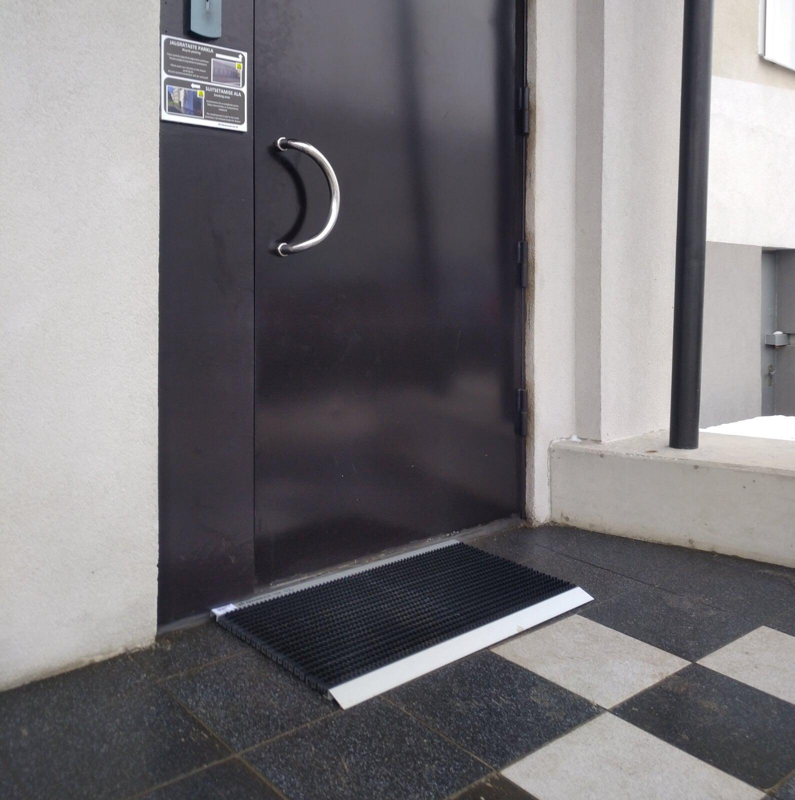 Kortermaja sissepääsu ette on paigaldatud uus uksematt, mis on varasemast suurem ning võimaldab sisenemisel tõhusamalt puhastada jalanõusid.
